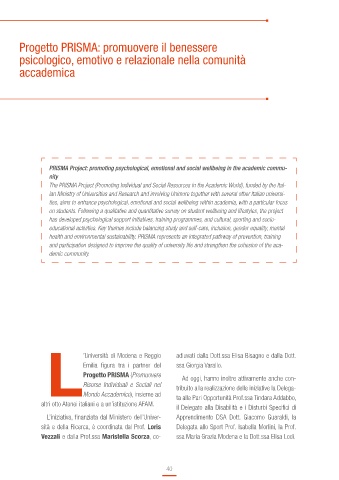 The PRISMA Project (Promoting Individual and Social Resources in the Academic World), funded by the Ital-
