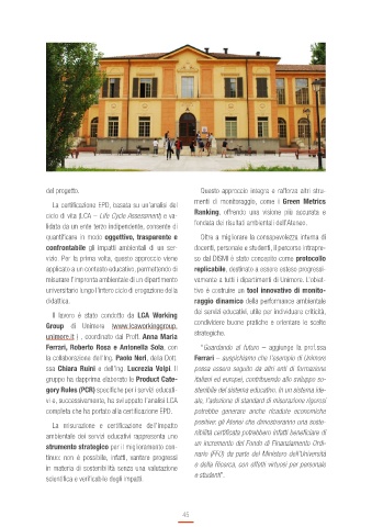 Group di Unimore (www.lcaworkinggroup. condividere buone pratiche e orientare le scelte