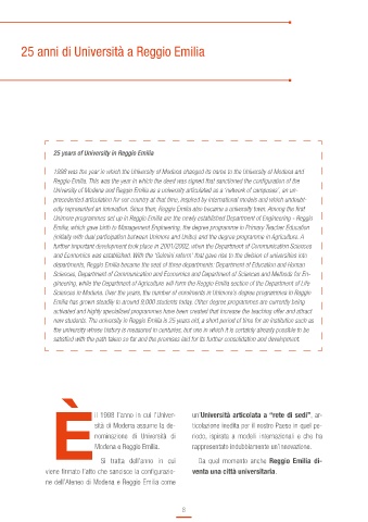 new students. The university in Reggio Emilia is 25 years old, a short period of time for an institution such as
