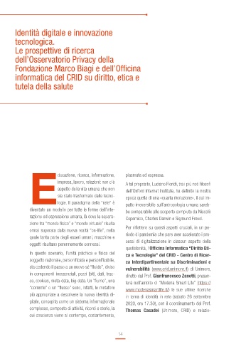ormai superata dalla nuova realtà “on-life”, nella Per riflettere su questi aspetti cruciali, in un pe-