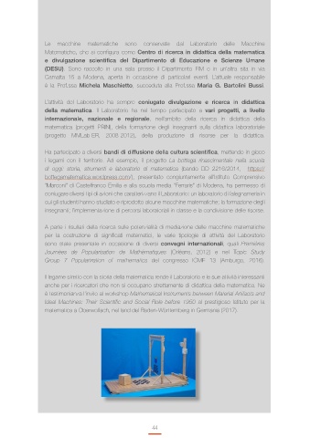 cui gli studenti hanno studiato e riprodotto alcune macchine matematiche; la formazione degli