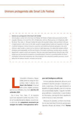 festival, you can download the programme at smartlifefestival.it. Unimore’s commitment within the Smart